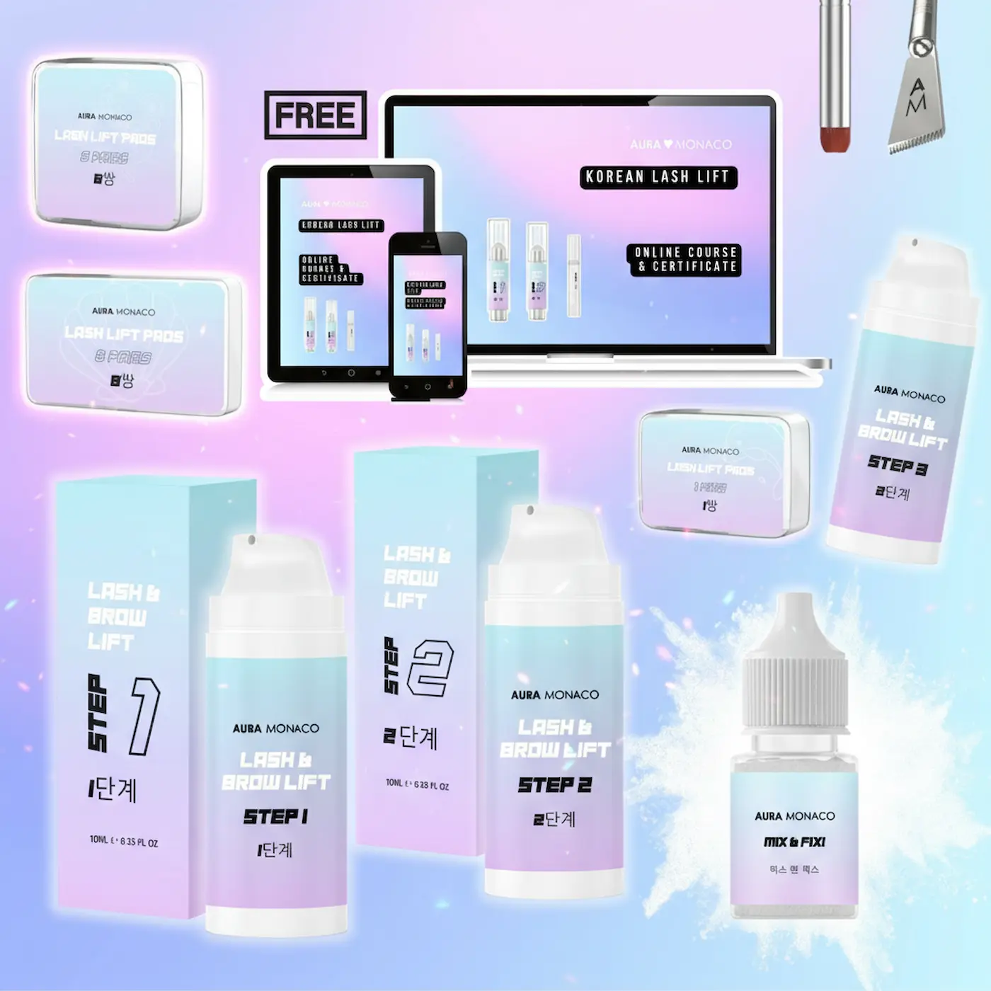 Revolutionary AURA Monaco Korean Lash Lift with ALL the Products you need + FREE Online Course & Certificate. Better Results, gentler Treatment.